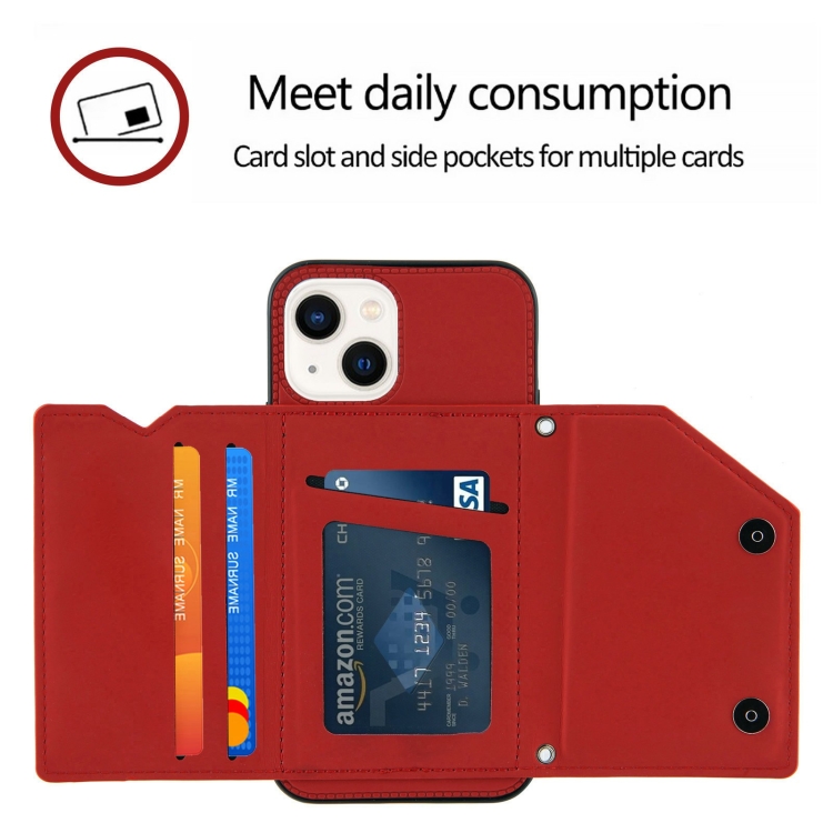 Funda para iPhone 14 + 13 Skin Feel PU TPU PC Contraportada a Prueba de Golpes (Rojo)