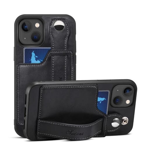 Correa de Muñeca Suteni 215 para iPhone 14 Funda de Teléfono Pu (Negro)