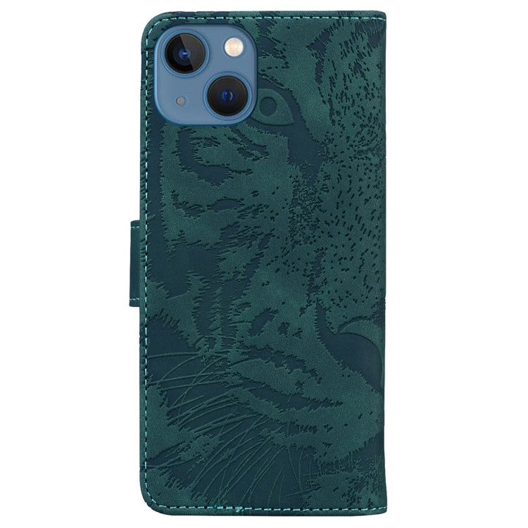 Funda para iPhone 14 Tiger Embossing Pattern Leather Phone Case (Verde)