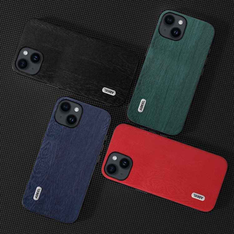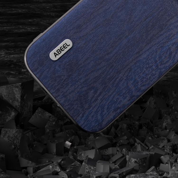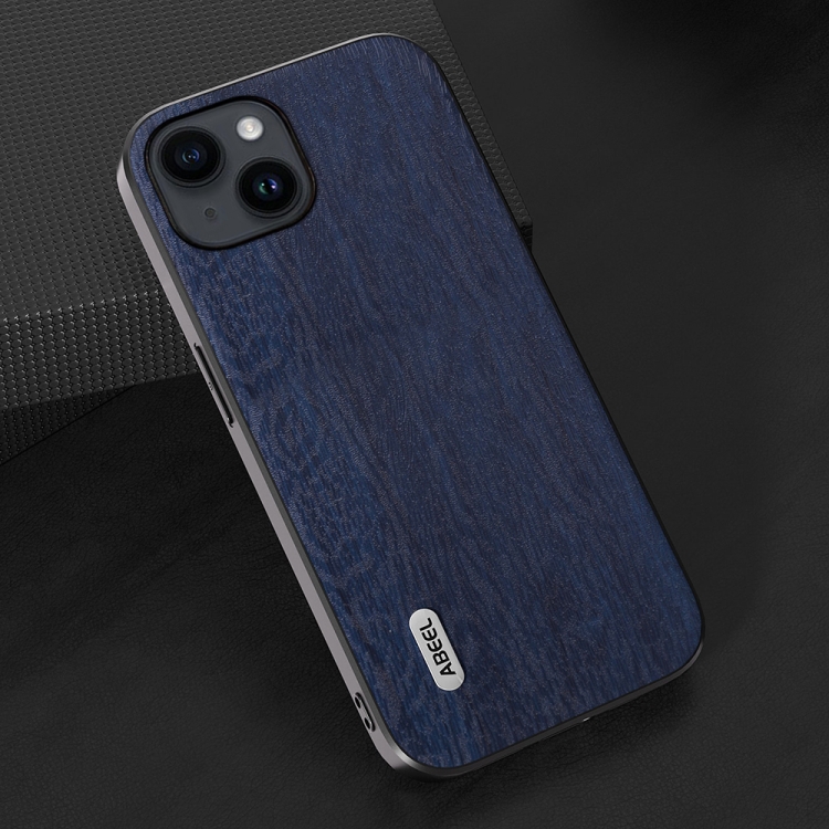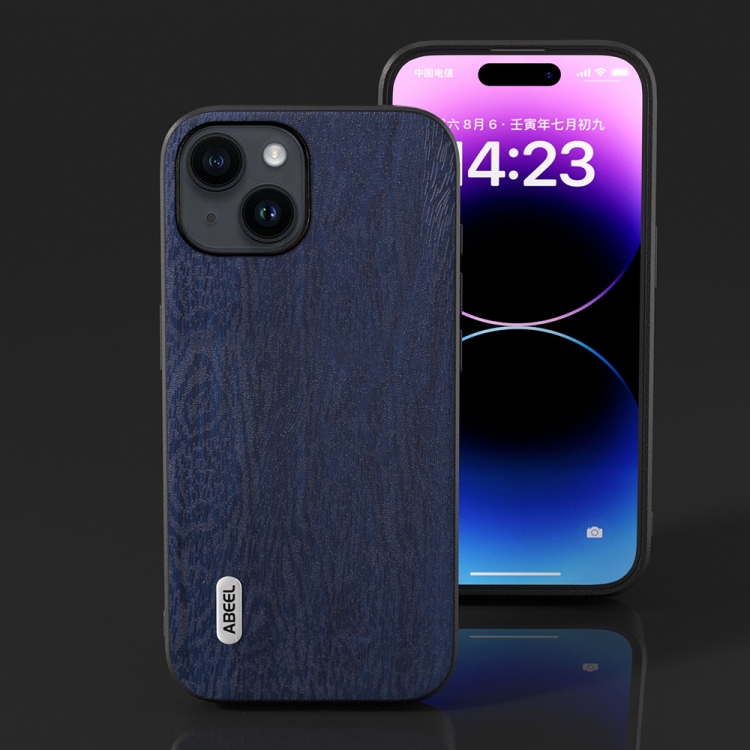Funda de teléfono Abeel para iPhone 15 con textura de madera PU (Azul)