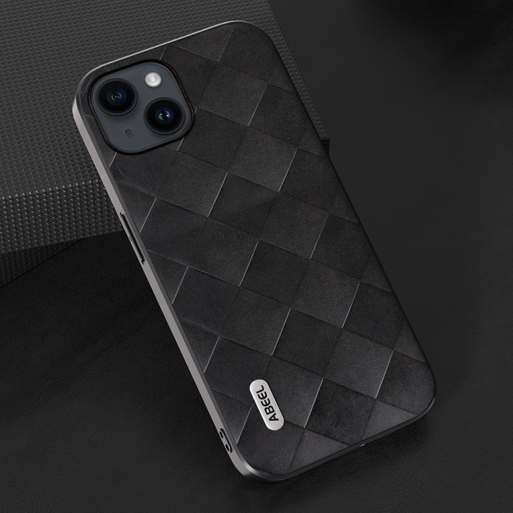 Funda para iPhone 15 Abeel Weave Plaid PU Phone Case (Negro)