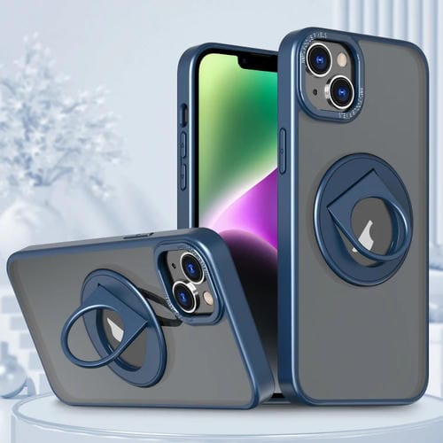 For iPhone 15 Rotating Ring Magnetic Kickstand Phone Case (Blue)