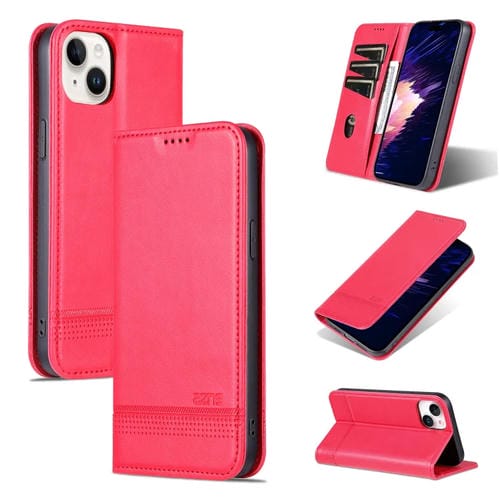 Funda de Teléfono Azns para iPhone 15 Cuero Textura de Becerro Magnético (Rojo)