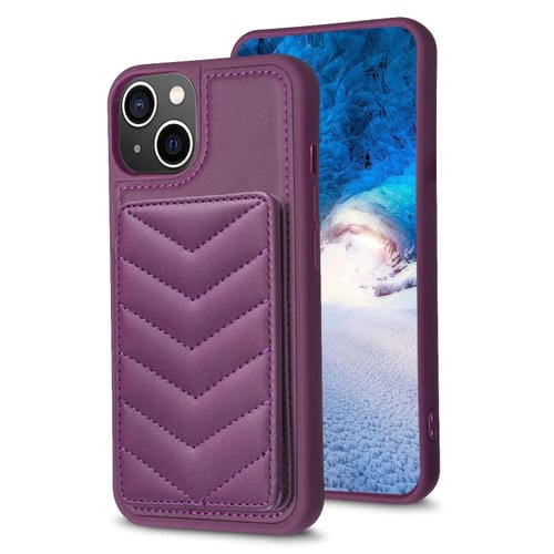 For iPhone 15 BF26 Wave Pattern Card Bag Holder Phone Case(Dark Purple)