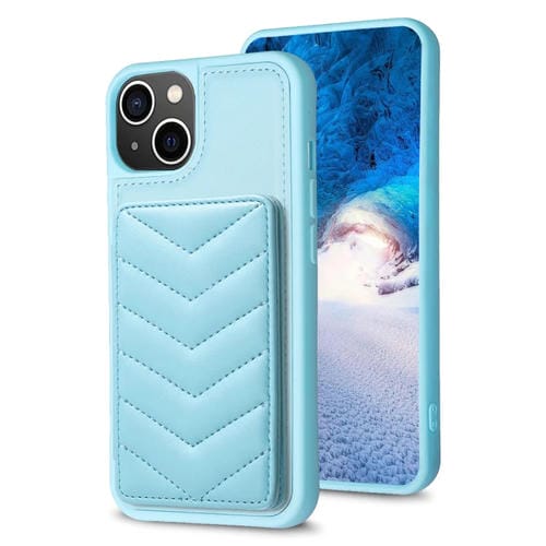 For iPhone 15 BF26 Wave Pattern Card Bag Holder Phone Case(Blue)