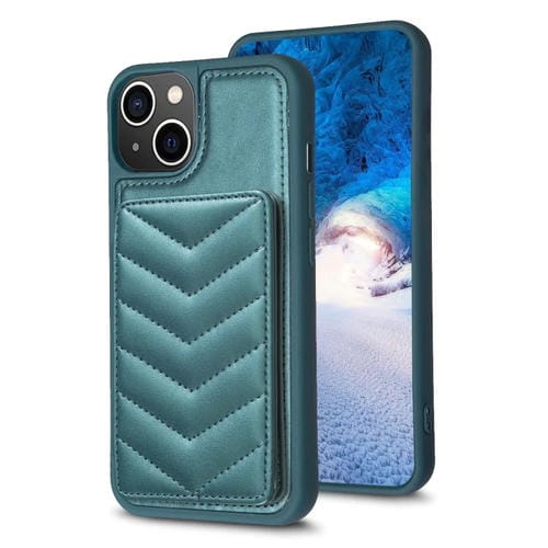 For iPhone 15 BF26 Wave Pattern Card Bag Holder Phone Case(Green)