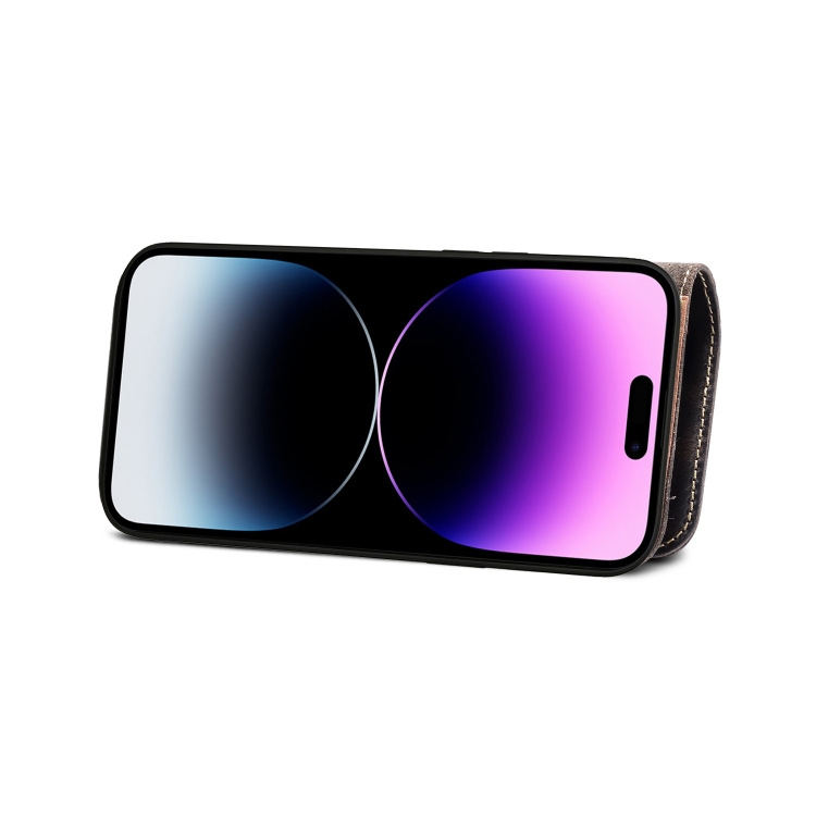 Funda para iPhone 15 Denior Oil Wax Cuero de Vaca Botón Magnético (Negro)