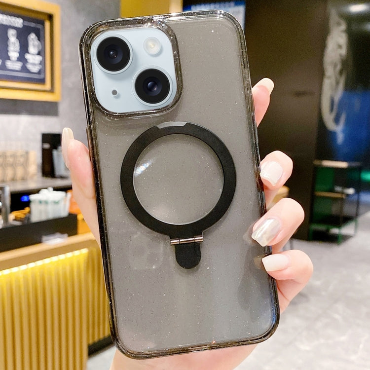 Estuche Magnético para Teléfono iPhone 15 Glitter Magsafe con Soporte (Negro)