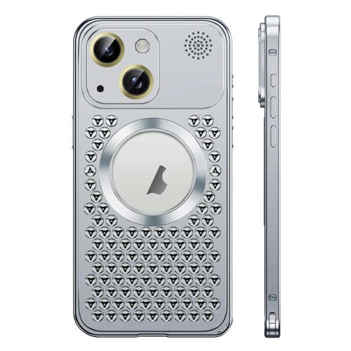 Estuche para Teléfono iPhone 15 Metal Magnético Magsafe Aromaterapia Hebilla de Resorte (Plateado)