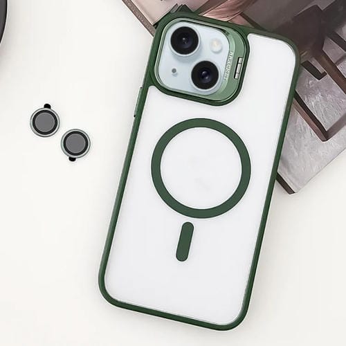 For iPhone 15 Phone Case with MagSafe Hybrid Acrylic TPU Holder with Lens Film (Green)