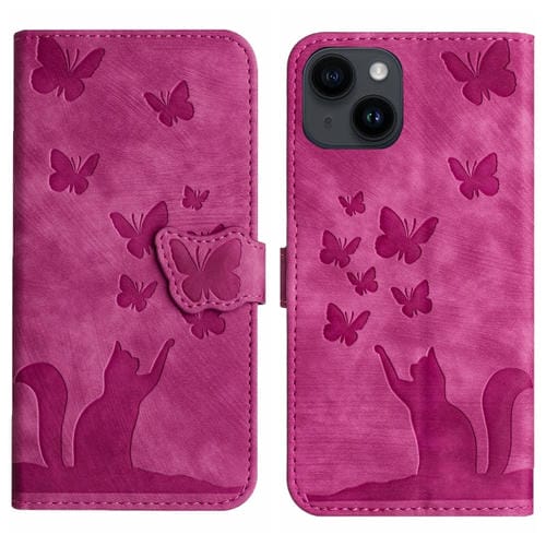 For iPhone 15 Butterfly Cat Pattern Flip Leather Case (Pink)