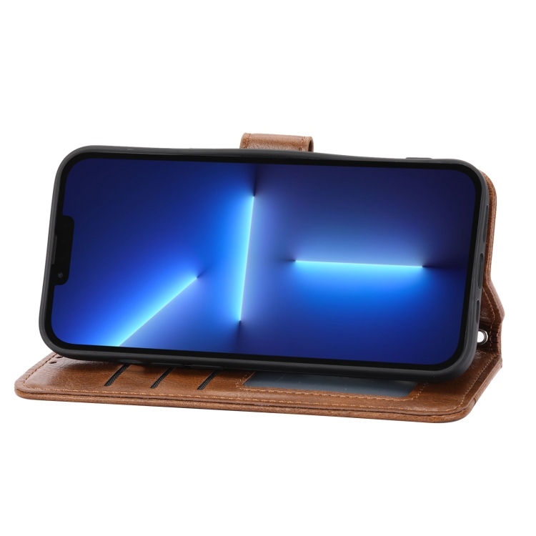 Funda para Teléfono iPhone 15 Cuero con Billetera y Cremallera (Marrón)