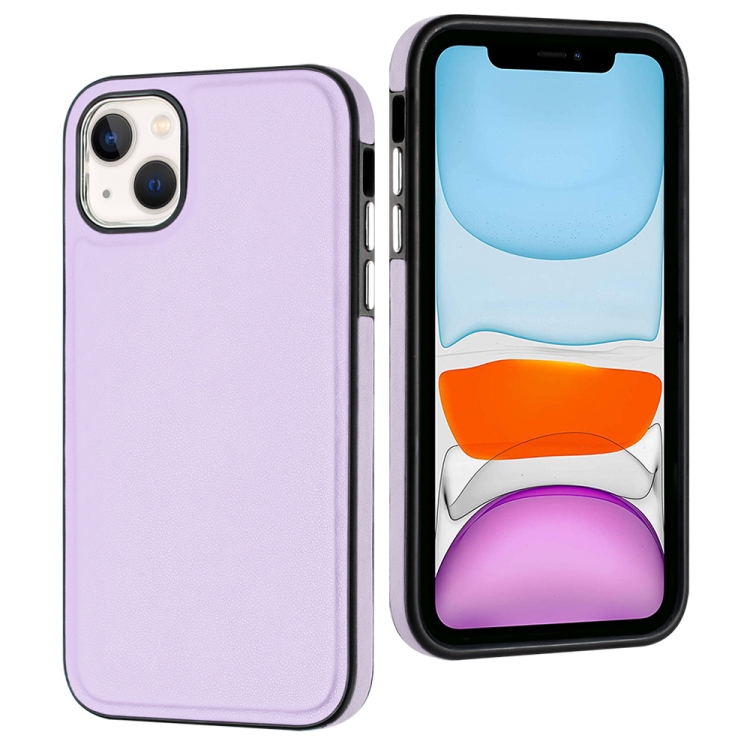 Funda de teléfono iPhone 15 cobertura total textura de cuero (Púrpura)