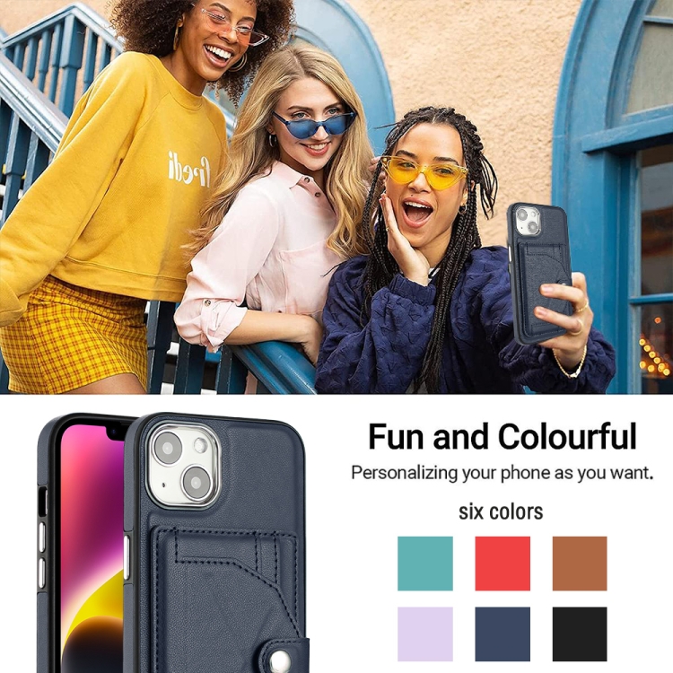 Funda de teléfono iPhone 15 Cuero a prueba de golpes con tarjetero (Azul)
