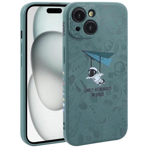 Funda para Teléfono iPhone 15 Silicona Borde Recto Patrón Astronauta (Green)