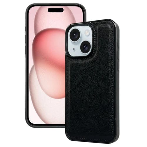 Funda para Teléfono iPhone 15 con Contraportada Textura Piel de Vaca (Negro)