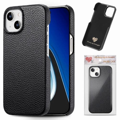 For iPhone 15 Phone Case with Litchi Oil Edge Leather Back (Black)