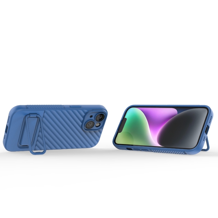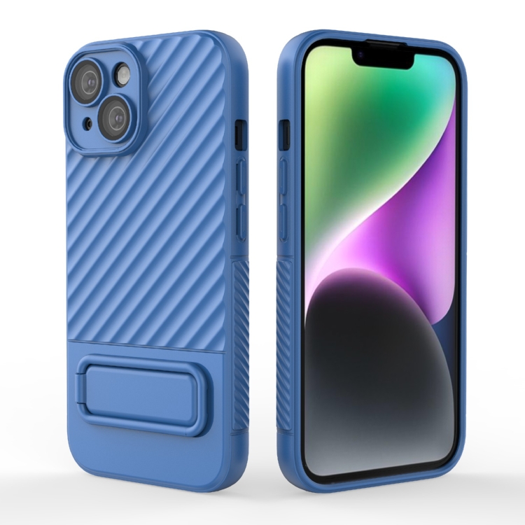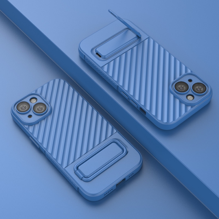 Funda para Teléfono TPU para iPhone 15 con Textura Ondulada y Película para Lentes (Azul)