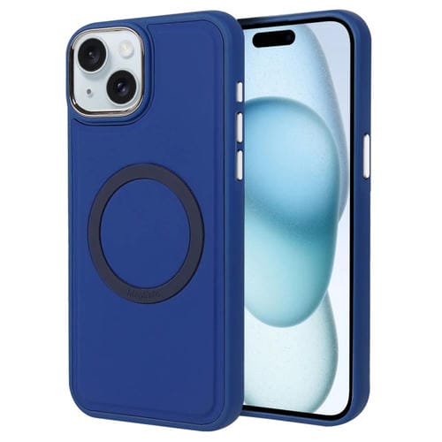 Funda para Teléfono iPhone 15 Magsafe con Revestimiento de Piel Líquida de Imitación (Azul)