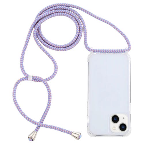 Funda Protectora para iPhone 15 Acrílico Transparente con Bolsa de Aire y Cordón (Albaricoque Azul Púrpura)