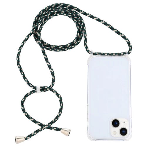 Funda Protectora para iPhone 15 a Prueba de Golpes con Bolsa de Aire Acrílico Transparente con Cordón (Verde Beige Negro)