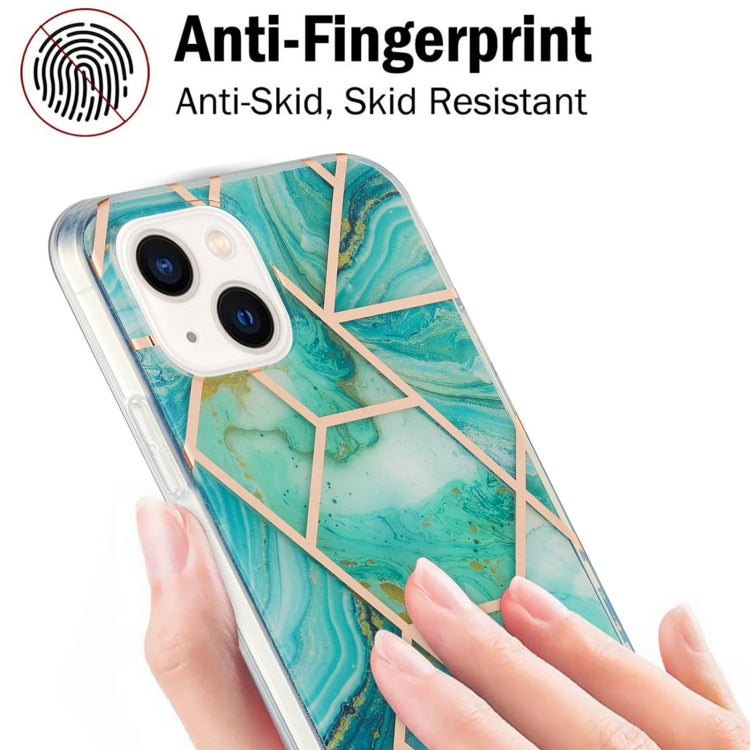 Caja del Teléfono iPhone 15 Galvanoplastia Empalme Mármol Patrón de Flores Doble Cara Imd TPU (Azul)