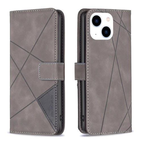 Funda de Cuero para iPhone 15 Hebilla Magnética Rombo Textura (Gris)