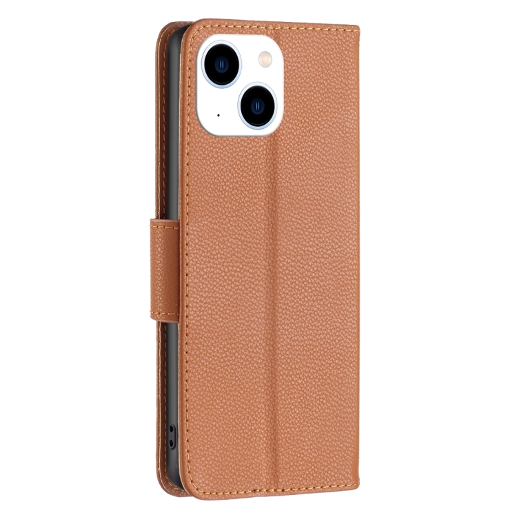 Funda de Cuero Flip para iPhone 15 Litchi Texture Pure Color (Marrón)