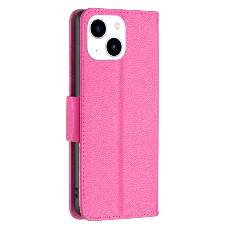 Funda de Cuero Flip para iPhone 15 Litchi Texture Pure Color (Rosa Roja)