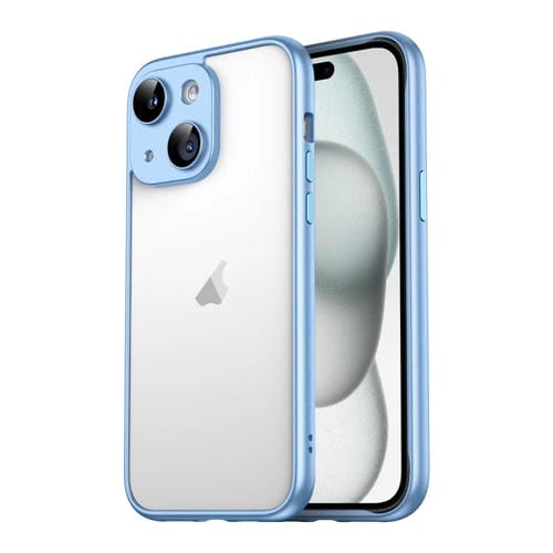 For iPhone 15 Macaron PC Phone Pure Edge Frame with Glass Lens Film (Blue)