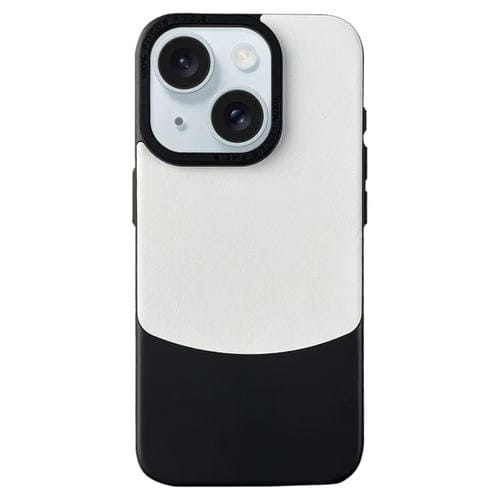 For iPhone 15 Napa Texture PC + Leather Phone Case (Panda Black)