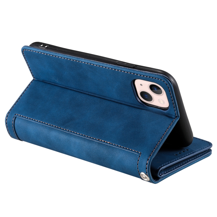 Funda de Cuero Nine Card Zipper Bag para iPhone 15 con Cordón (Azul)