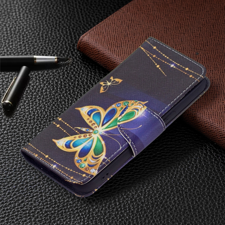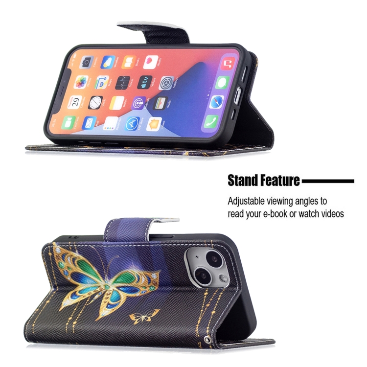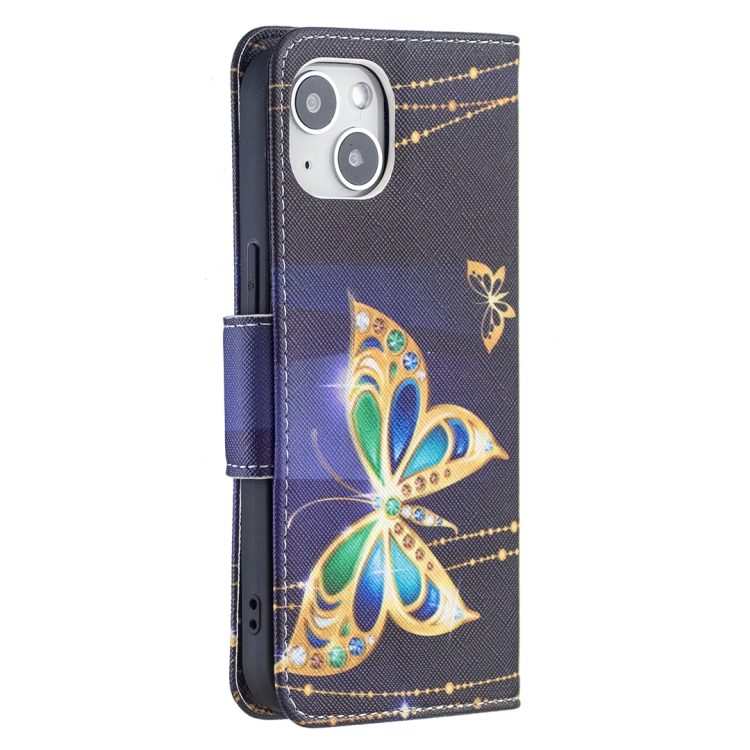 Funda flip de cuero para iPhone 15 con patrón de dibujo coloreado (Mariposa Grande)