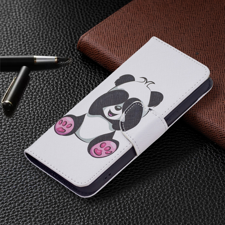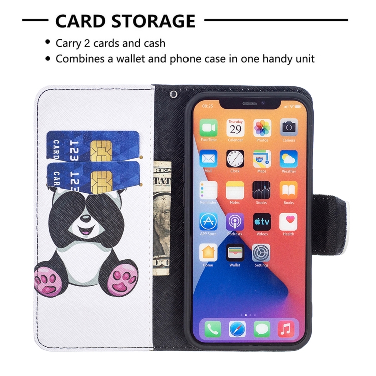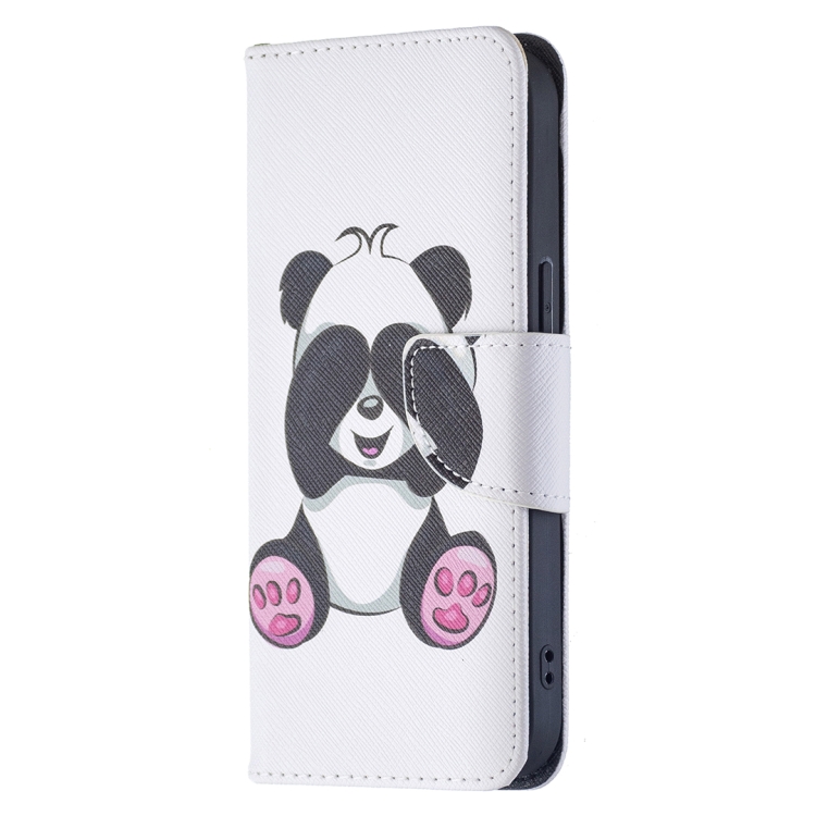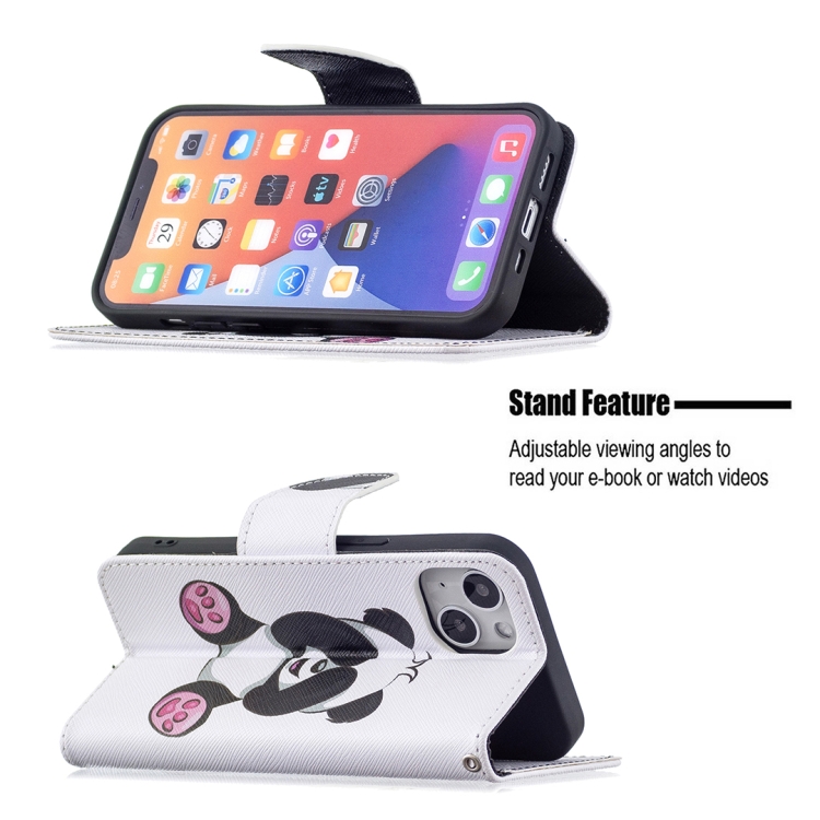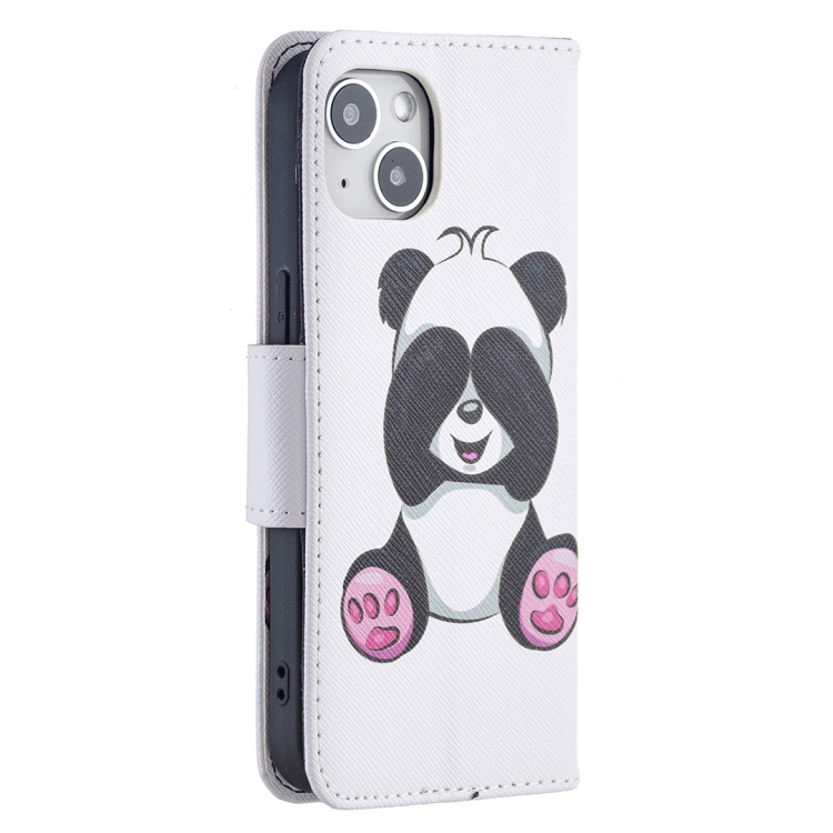 Funda Flip de Cuero para iPhone 15 Patrón de Dibujo Coloreado (Panda)