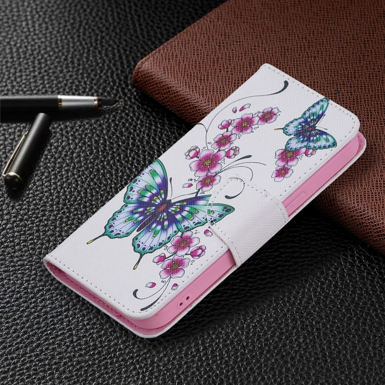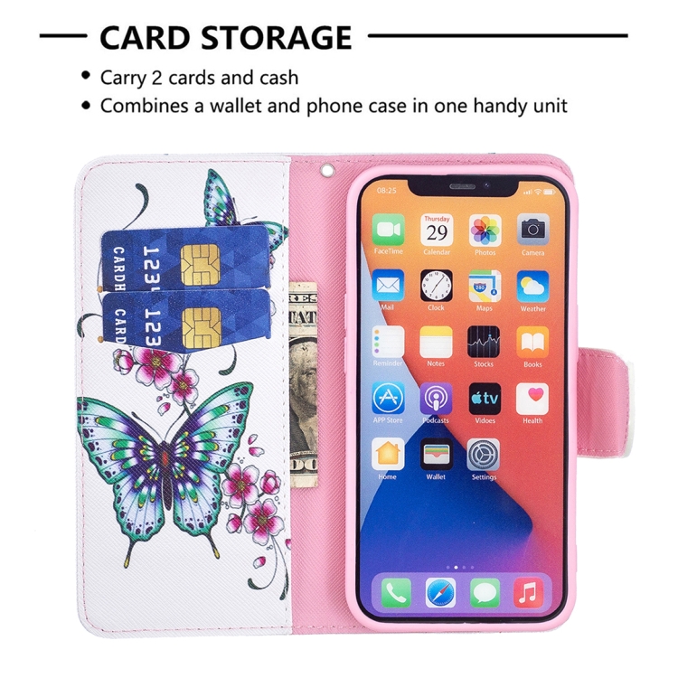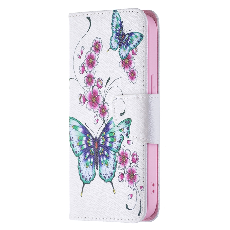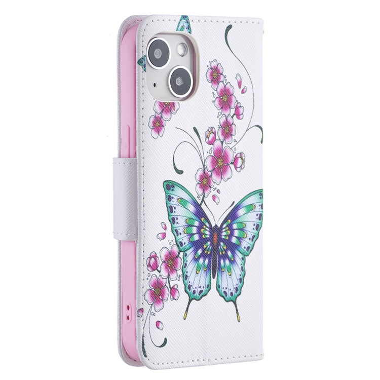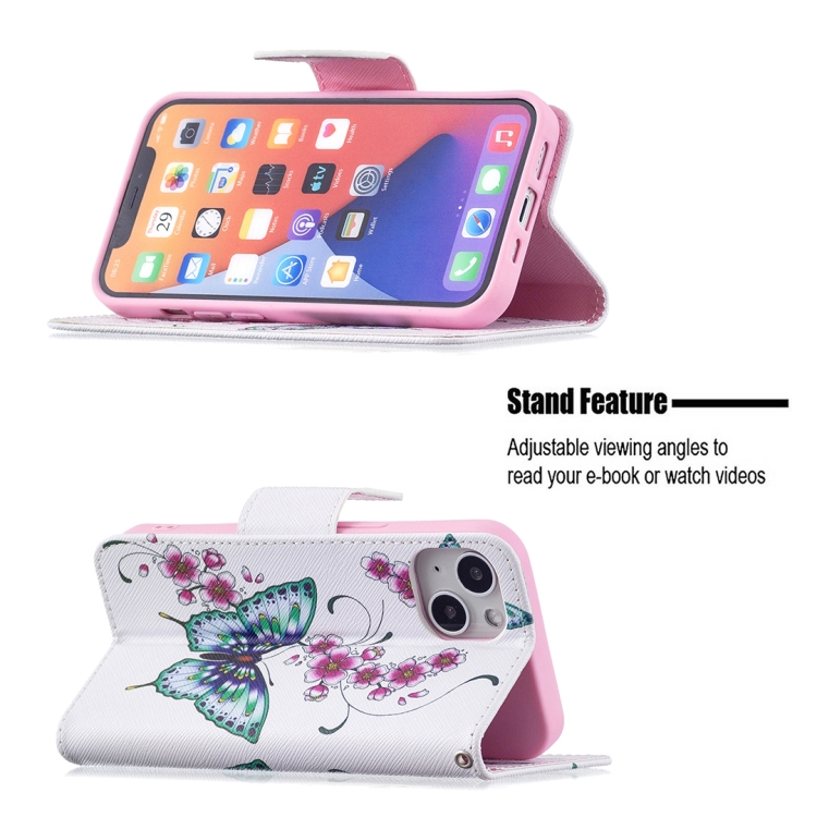 Funda de Cuero para iPhone 15 Patrón de Dibujo Coloreado con Tapa (Mariposa de Flores)