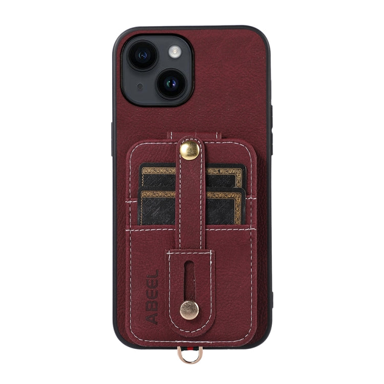 Funda para iPhone 15 Plus Abeel Litchi Texture Card Bag PU Case (Púrpura)
