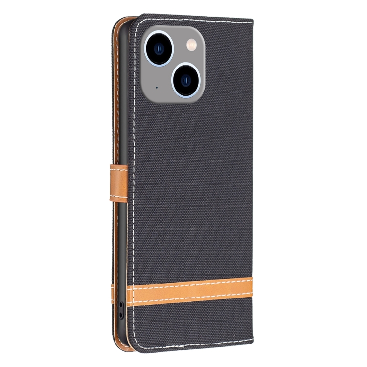 Funda para iPhone 15 Plus Color Block Denim Texture Leather Phone Case (Negro)