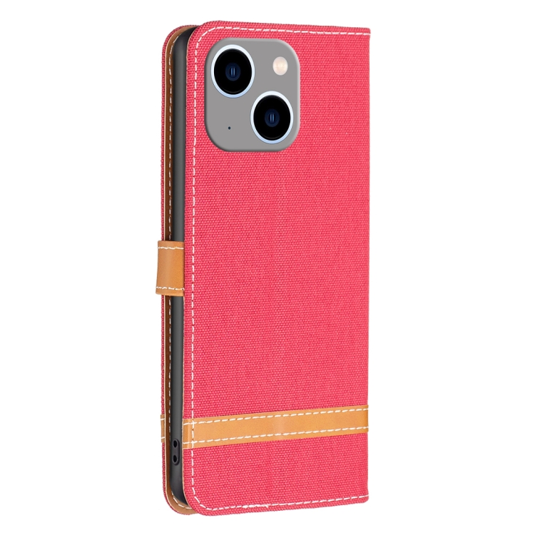 Funda para iPhone 15 Plus Color Block Denim Texture Leather Phone Case (Rojo)