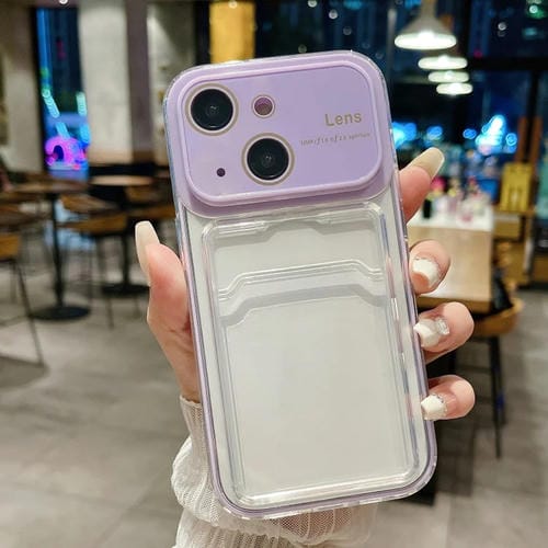 Estuche híbrido para iPhone 15 Plus TPU con ventana grande para PC con ranura para tarjeta (Púrpura Claro)