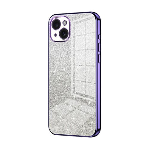 Estuche para Teléfono iPhone 15 Plus Galvanizado con Polvo de Brillo Degradado (Púrpura)