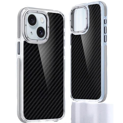For iPhone 15 Plus Two-color Carbon Fiber Acrylic TPU Hybrid Phone Case (Gray)