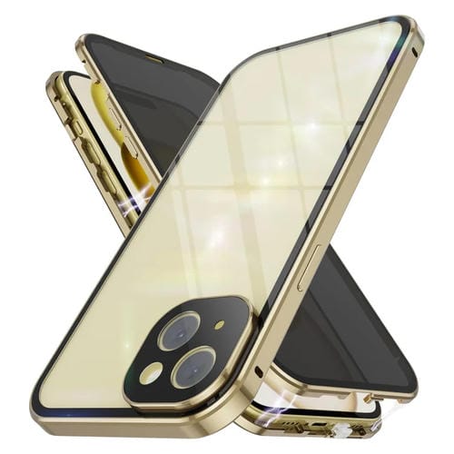 Funda Magnética para iPhone 15 Plus Vidrio Templado Doble Cara Anti-Peeping (Dorado)