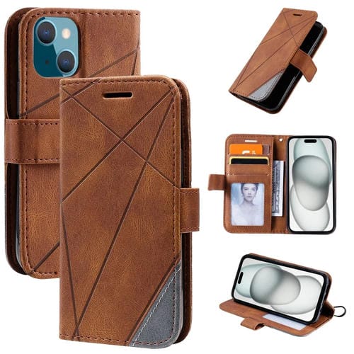 For iPhone 15 Plus Skin Feel Splicing Leather Phone Case(Brown)