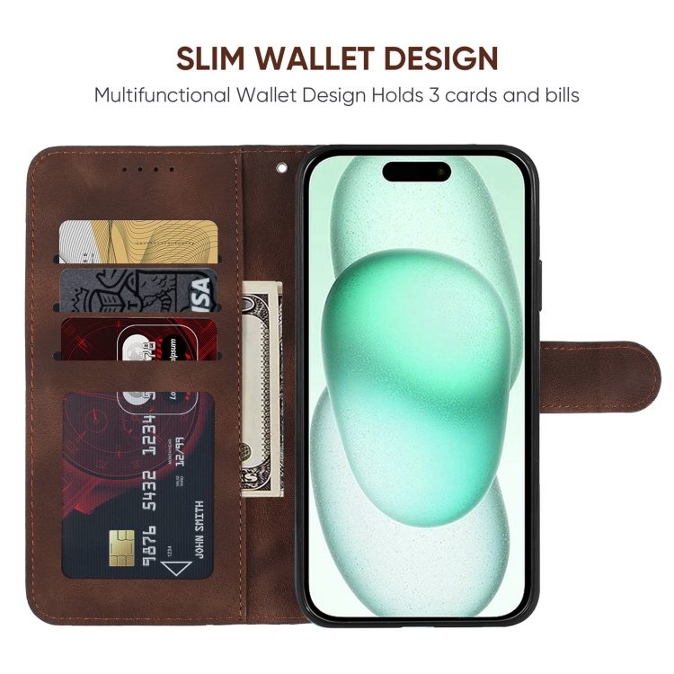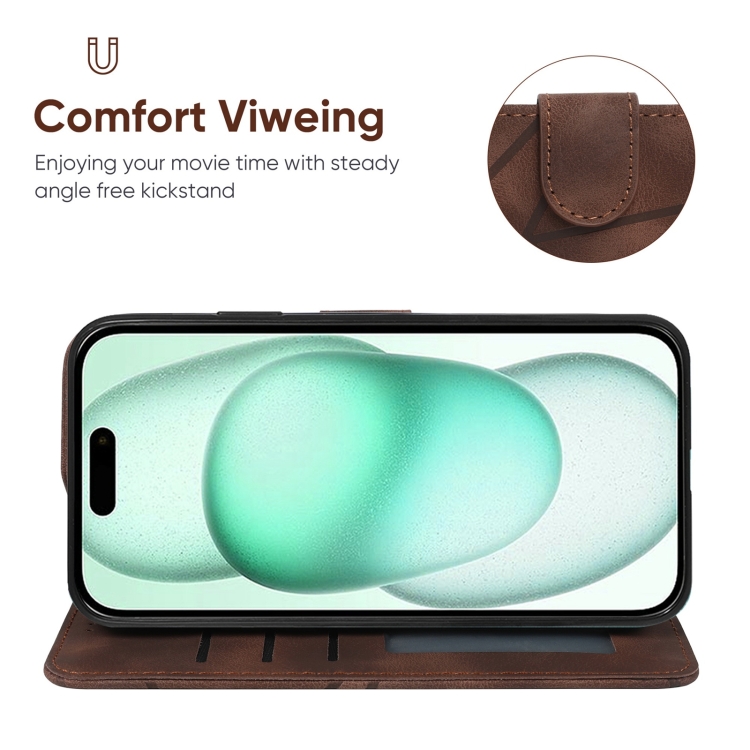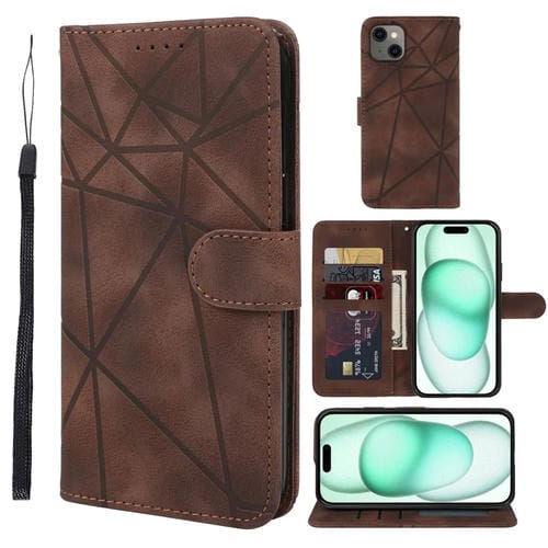 Funda para iPhone 15 Plus Skin Feel de Cuero con Líneas Geométricas (Marrón)
