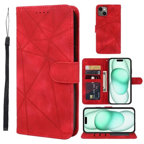 Funda para iPhone 15 Plus Skin Feel Cuero Líneas Geométricas (Rojo)