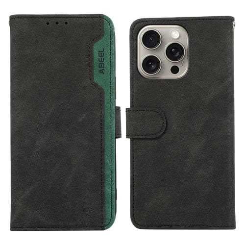 Funda para iPhone 15 Pro Abeel Color Block de Cuero Magnética Rfid (Negro-Verde)