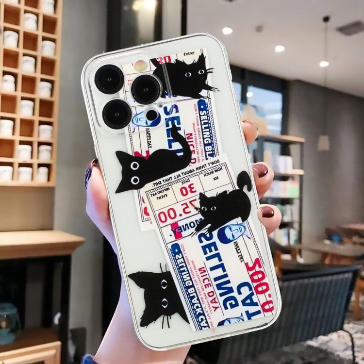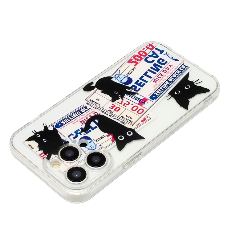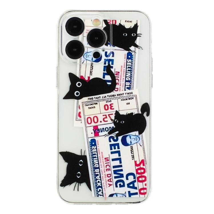 Caja de teléfono TPU para iPhone 15 Pro con patrón de pintura colorida (Gato Negro)