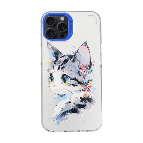 Funda para teléfono iPhone 15 Pro Cartoon Animal Graffiti PC y TPU (Gato de Cara Blanca)