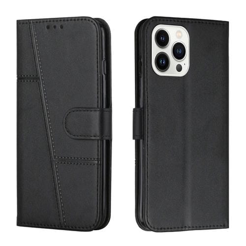 Funda de Cuero para iPhone 15 Pro Costura Becerro Textura Hebilla (Negro)