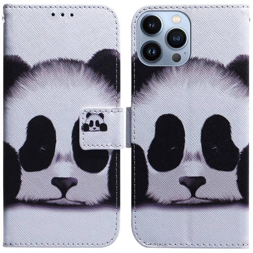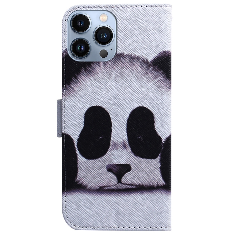 Estuche de Teléfono Cuero para iPhone 15 Pro con Tapa Dibujo Coloreado (Panda)